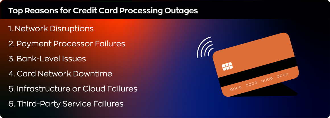 1. What typically causes credit card or payment processing outages?