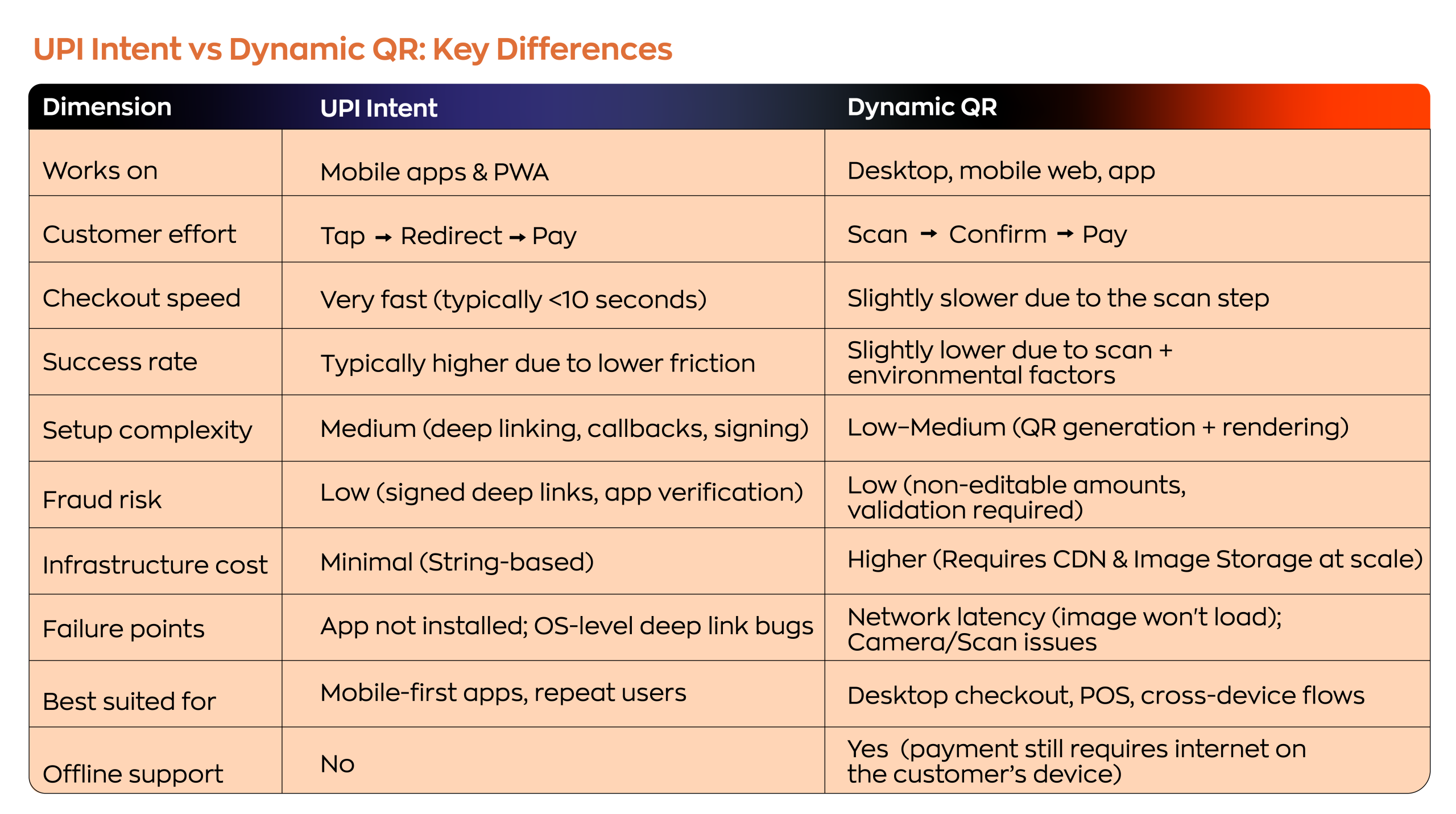 This is exactly where the choice between UPI intent vs dynamic QR becomes critical.